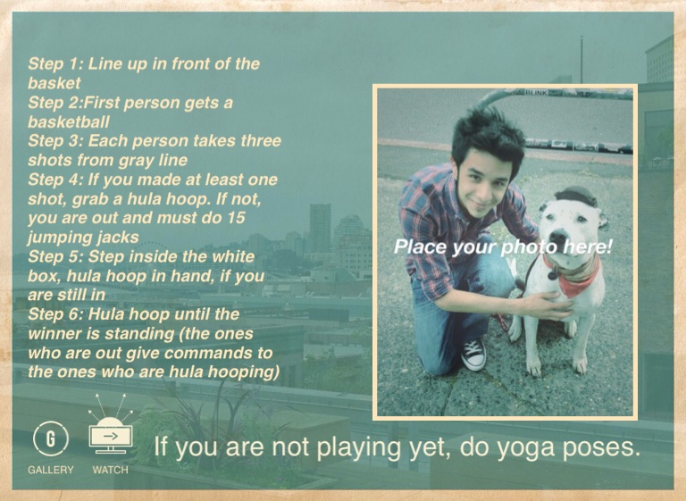 Step 4: If you made at least one shot, grab a hula hoop. If not, you are out and must do 15 jumping jacks