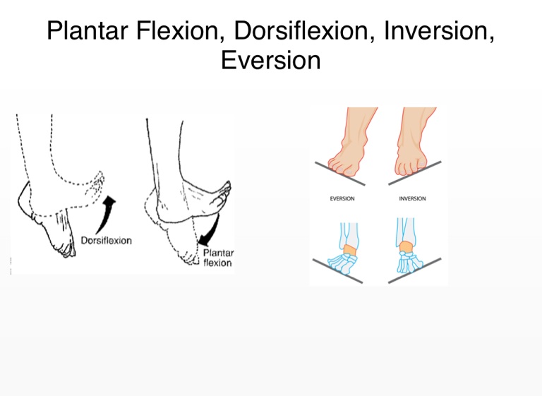 Plantar Flexion, Dorsiflexion, Inversion, Eversion