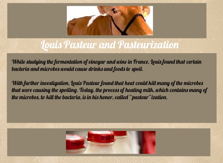 With further investigation, Louis Pasteur found that heat could kill many of the microbes that were causing the spoiling. Today, the process of heating milk, which contains many of the microbes, to kill the bacteria, is in his honor, called “pasteur”ization.