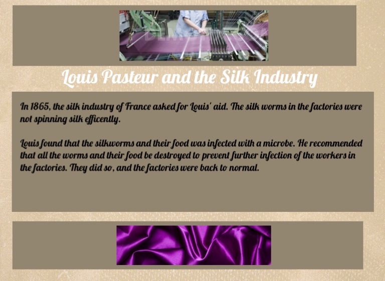 In 1865, the silk industry of France asked for Louis' aid. The silk worms in the factories were not spinning silk efficently.