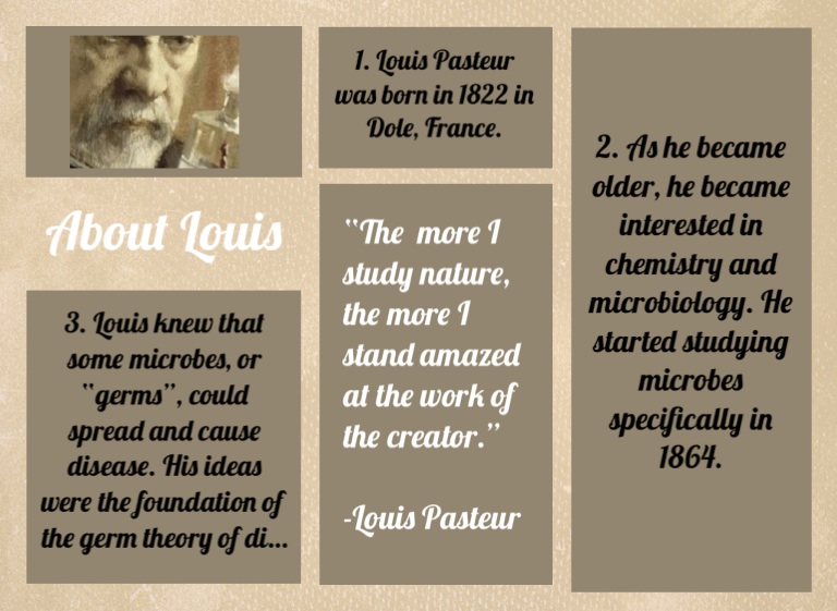 3. Louis knew that some microbes, or “germs”, could spread and cause disease. His ideas were the foundation of the germ theory of disease.