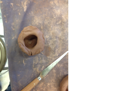 Then with your thumb in the clay pinch and pull up. If the clay is too dry then add water.