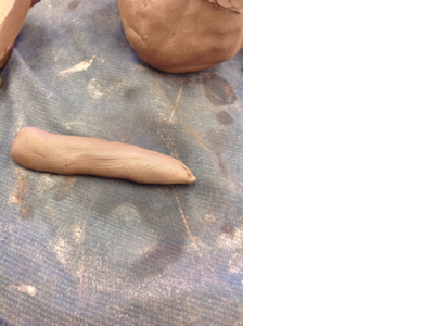First you start by rolling a piece of clay into a form that looks like a worm. Then you get it wet with your water and curve it into a swirl.