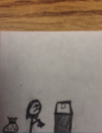 As mrs.leuko is in the Allie she is careful not to step on any nails. But she dose not notice the pile of glass and accidentally step on one, and almost immediately after she crys out "oooooooowwwwwww" then races into her house and drop the trash bag