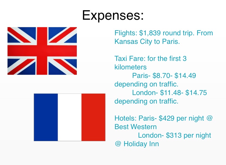 Flights: $1,839 round trip. From Kansas City to Paris.