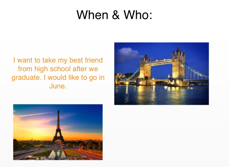 I want to take my best friend from high school after we graduate. I would like to go in June.