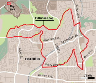 The Fullerton Loop Trail is a dirt path that goes around Fullerton. People usually bike there or walk. It often takes under an hour to complete the trail by foot or bike. Throughout the ride there are some warnings about steep hills for your own safety. The Fullerton Loop Trail is north of downtown Fullerton.