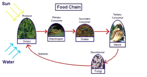 Food Chain-A diagram that represents how the energy in food molecules flows from one organism to the next