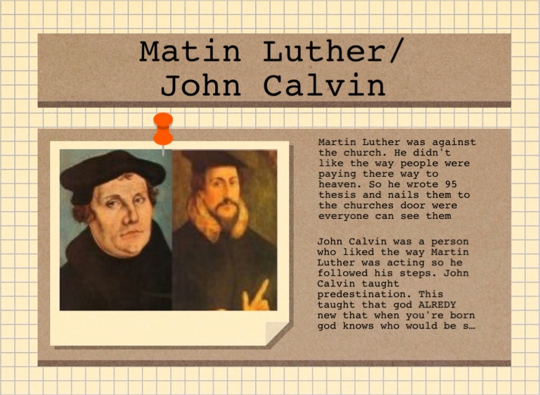John Calvin was a person who liked the way Martin Luther was acting so he followed his steps. John Calvin taught predestination. This taught that god ALREDY new that when you're born god knows who would be saved.