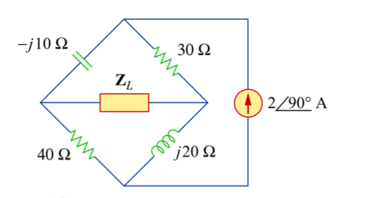 Calculate the value of of ZL in the circuit in order for ZL to receive maximum average power. What is the maximum average power received by ZL
