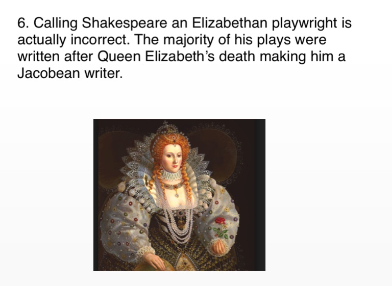 6. Calling Shakespeare an Elizabethan playwright is actually incorrect. The majority of his plays were written after Queen Elizabeth’s death making him a Jacobean writer.