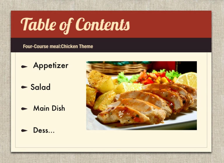 Four-Course meal:Chicken Theme
