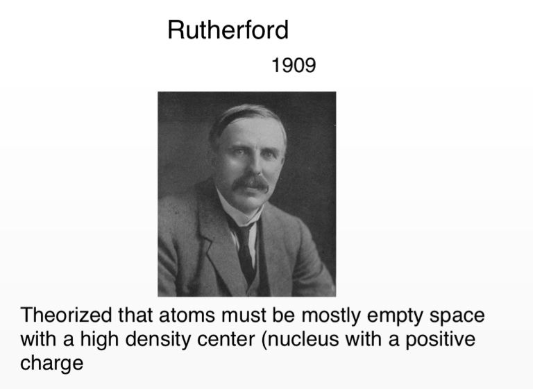 Theorized that atoms must be mostly empty space with a high density center (nucleus with a positive charge