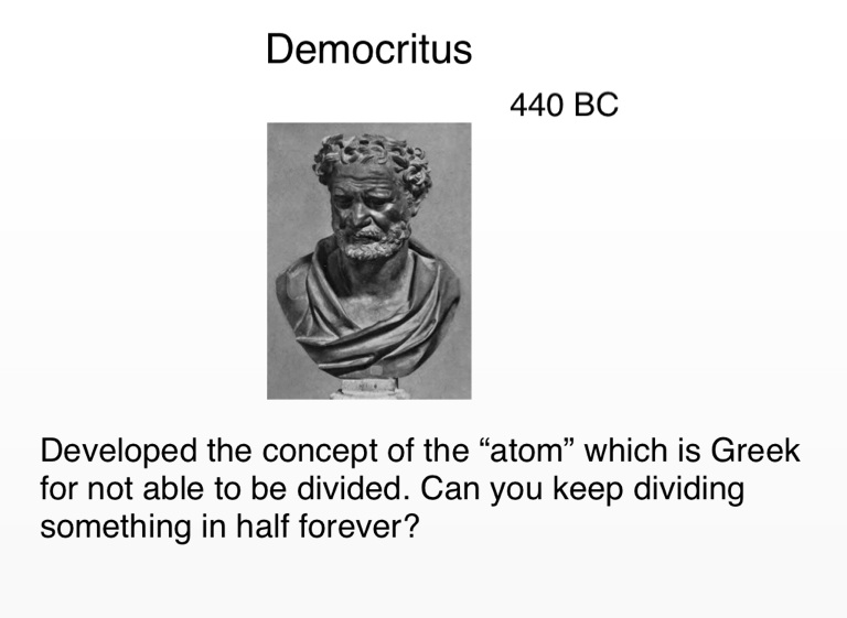 Developed the concept of the “atom” which is Greek for not able to be divided. Can you keep dividing something in half forever?