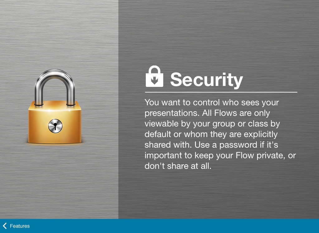 You want to control who sees your presentations. All Flows are only viewable by your group or class by default or whom they are explicitly shared with. Use a password if it's important to keep your Flow private, or don't share at all.