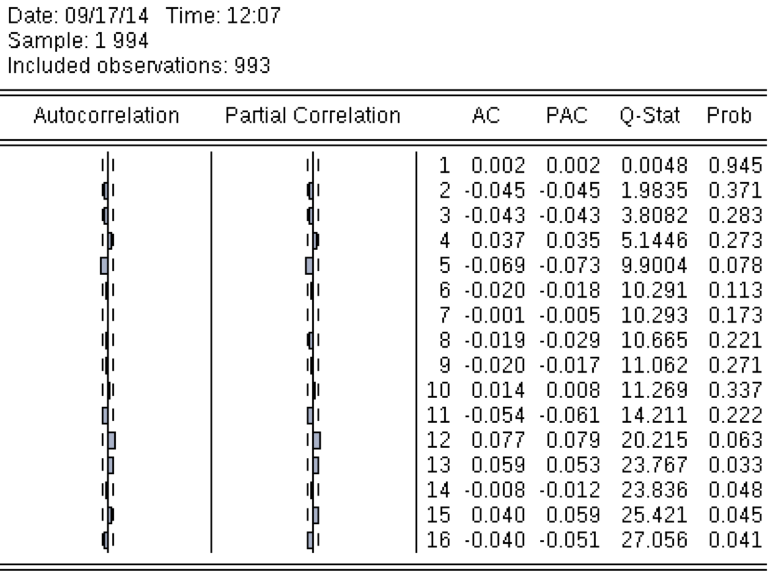 quick -> series statistics -> correlogram -> dlprice