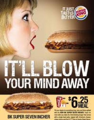 It claims to be an burger that will "blow your mind away". This is an extreme exaggeration considering it is a food item. It is not possible for it to "blow your mind away". It is said to make the product seem as though it is something different and unique.