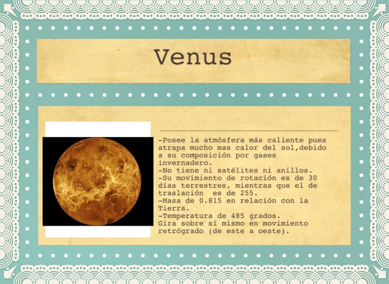 -Posee la atmósfera más caliente pues atrapa mucho mas calor del sol,debido a su composición por gases invernadero.