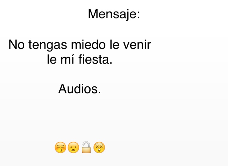 No tengas miedo le venir le mí fiesta. Audios. 😚😦🔓😲