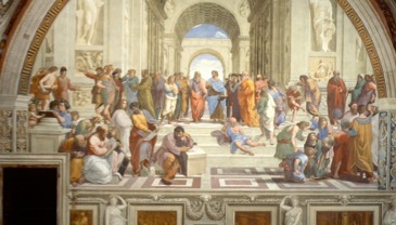 Judge: I am definitely drawn into this painting because of the bright colors and arches. The arches are excellent in creating a focal point because you don't have to search to find the main subjects of the piece; they are right in front of the viewer. The painting is very interesting because it shows all different philosophers of the time, and you can just imagine what kinds of discussions they all have. The content of the artwork was well communicated.