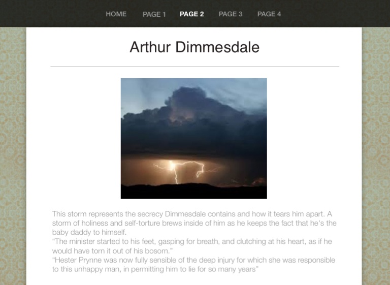 This storm represents the secrecy Dimmesdale contains and how it tears him apart. A storm of holiness and self-torture brews inside of him as he keeps the fact that he's the baby daddy to himself.