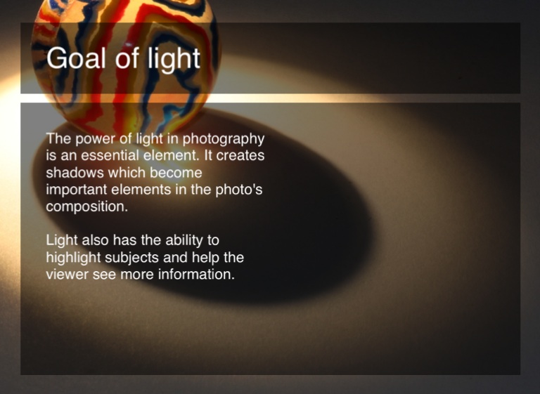 The power of light in photography is an essential element. It creates shadows which become important elements in the photo's composition.