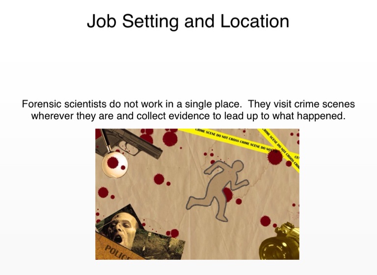 Forensic scientists do not work in a single place. They visit crime scenes wherever they are and collect evidence to lead up to what happened.