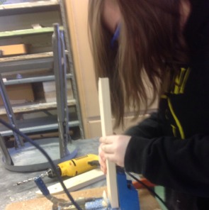Holes are being drilled in the side pieces.