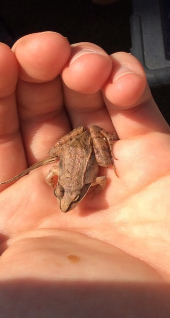 The wood frog is one of the few frogs that could be found in Alaska and above the Arctic Circle. It is one of the few animals that can freeze, but doesn't die. They can be found far from water or close to water. These kinds of frogs have two raised lines running along its back. Since they don't spend much time in water the feet aren't webbed. The are one of the first frogs to breed in early spring. Their call sounds like a "quack".