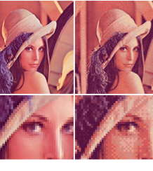 Ordered dithering is an image dithering algorithm. It is commonly used by programs that need to provide continuous image of higher colors on a display of less color depth. For example, Microsoft Windows uses it in 16-color graphics modes. It is easily distinguished by its noticeable crosshatch patterns.