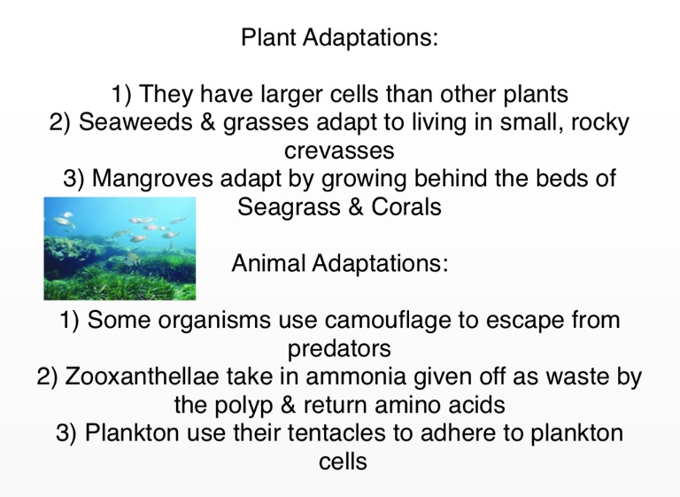 3) Mangroves adapt by growing behind the beds of Seagrass & Corals