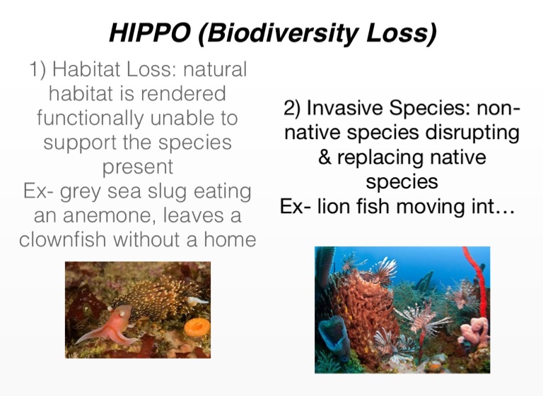 1) Habitat Loss: natural habitat is rendered functionally unable to support the species present