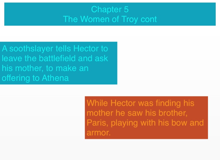 A soothslayer tells Hector to leave the battlefield and ask his mother, to make an offering to Athena