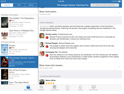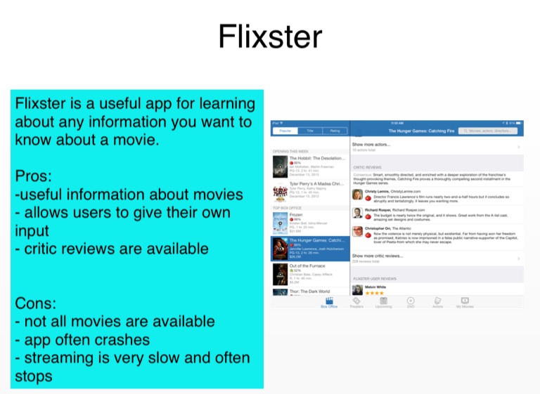Flixster is a useful app for learning about any information you want to know about a movie.