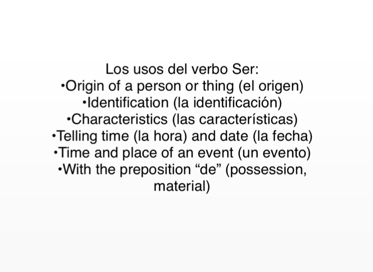 Los usos del verbo Ser: