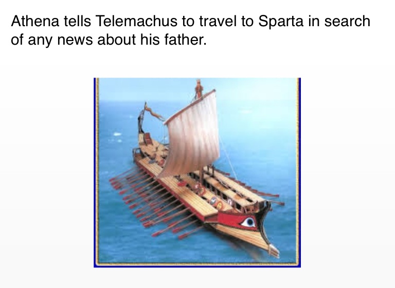 Athena tells Telemachus to travel to Sparta in search of any news about his father.