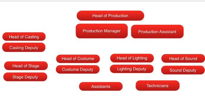 Casting, commercial operations, development, digital media, engineering, external relationships & partnerships, finance, general counsel, human resources, information technology, learning, marketing, music, NT future project, planning, platforms/WTS festival, press, print publications, studio, technical, voice.