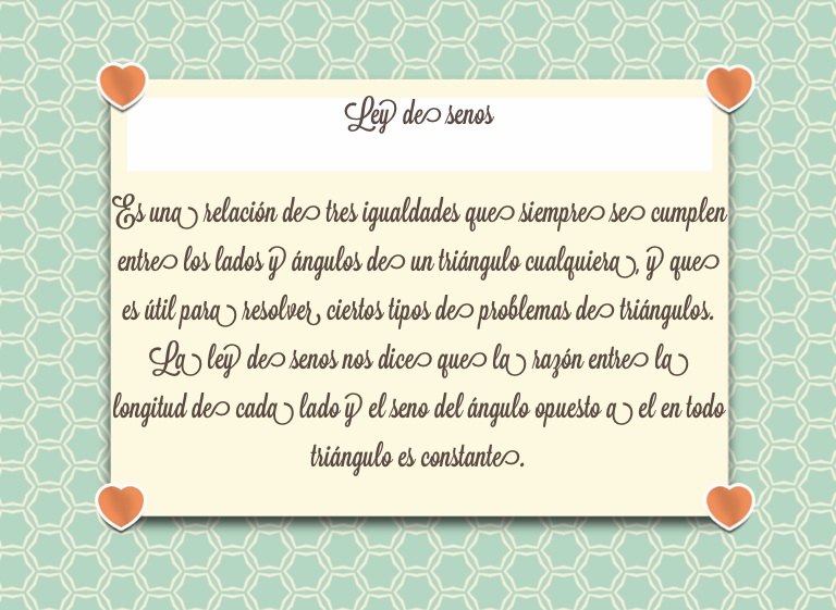 Es una relación de tres igualdades que siempre se cumplen entre los lados y ángulos de un triángulo cualquiera, y que es útil para resolver ciertos tipos de problemas de triángulos.