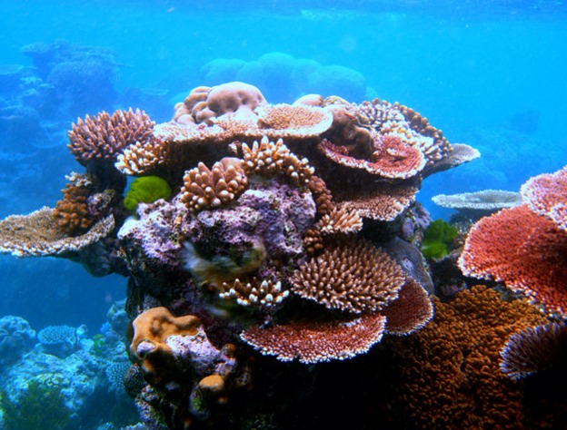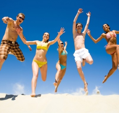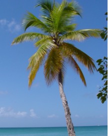 Examples of biotic factors in a beach environment are fish, humans, coral, seagulls, and palm trees.
