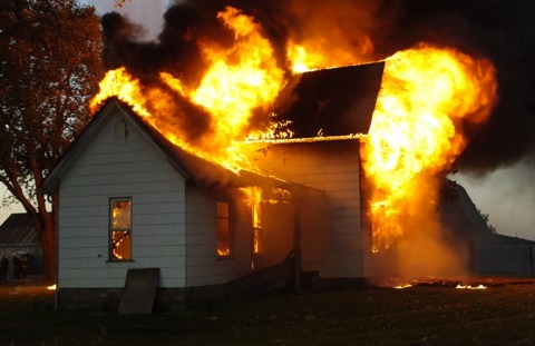"We stood watching the street fill with men and cars while fire silently devoured Miss Maudie's house." Pg. 92