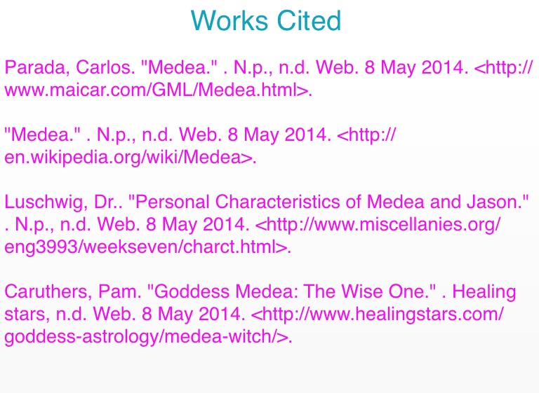 "Medea." . N.p., n.d. Web. 8 May 2014.