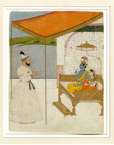 Title: "Raja Balwant Singh Revering Krishna and Radha"