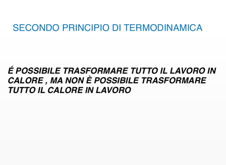 É POSSIBILE TRASFORMARE TUTTO IL LAVORO IN CALORE , MA NON È POSSIBILE TRASFORMARE TUTTO IL CALORE IN LAVORO