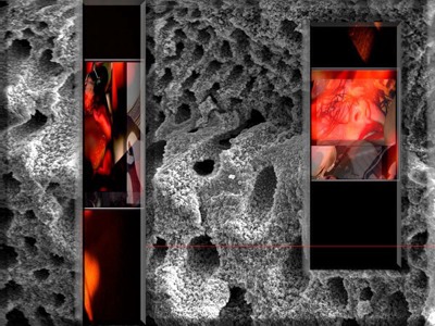 This art piece is a combination of a nano based image combined with a self portrait photograph. Here you see two separate spaces presented for potential environments for this work of art.