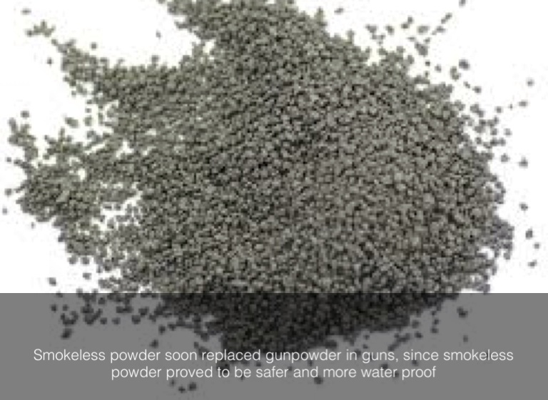 Smokeless powder soon replaced gunpowder in guns, since smokeless powder proved to be safer and more water proof