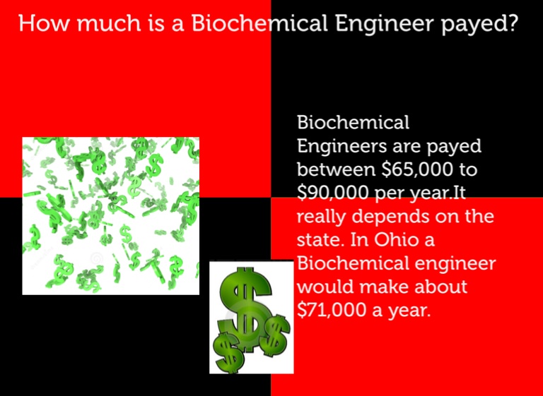 Biochemical Engineers are payed between $65,000 to $90,000 per year.It really depends on the state. In Ohio a Biochemical engineer would make about $71,000 a year.