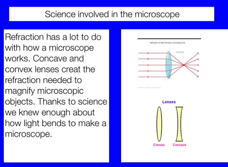 Refraction has a lot to do with how a microscope works. Concave and convex lenses creat the refraction needed to magnify microscopic objects. Thanks to science we knew enough about how light bends to make a microscope.