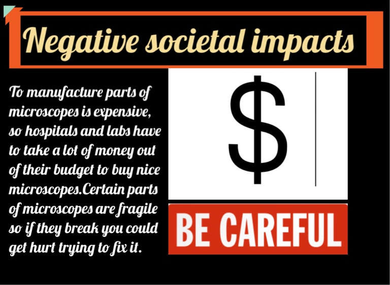 To manufacture parts of microscopes is expensive, so hospitals and labs have to take a lot of money out of their budget to buy nice microscopes.Certain parts of microscopes are fragile so if they break you could get hurt trying to fix it.