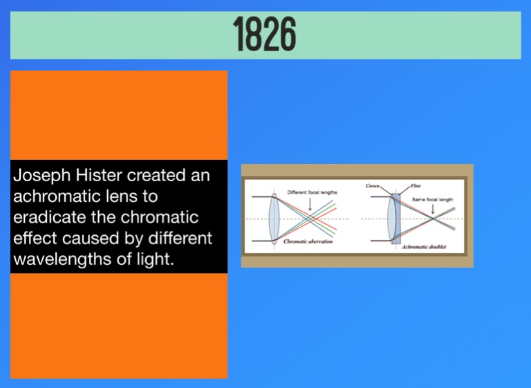Joseph Hister created an achromatic lens to eradicate the chromatic effect caused by different wavelengths of light.
