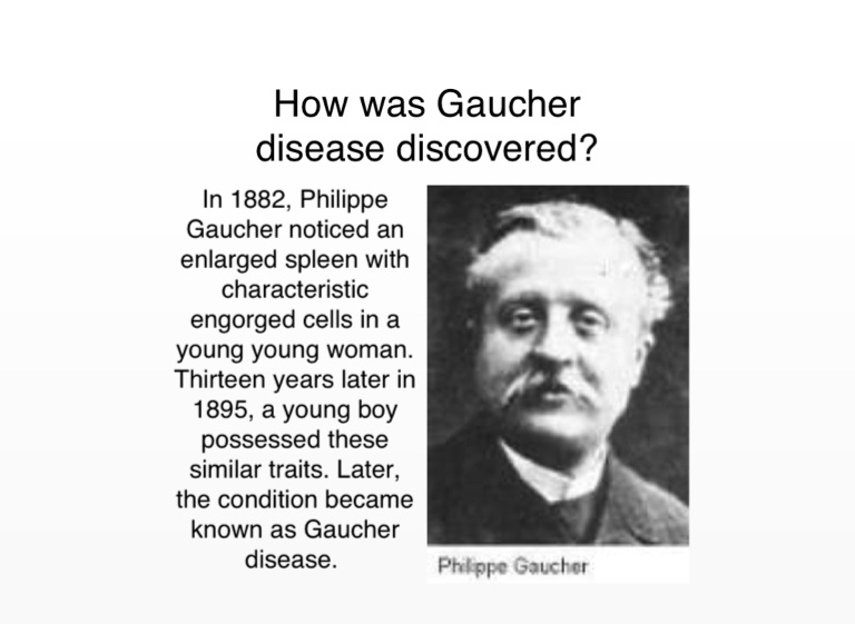 In 1882, Philippe Gaucher noticed an enlarged spleen with characteristic engorged cells in a young young woman. Thirteen years later in 1895, a young boy possessed these similar traits. Later, the condition became known as Gaucher disease.